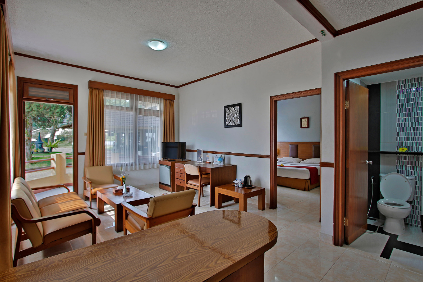 Kamar hotel dirancang untuk memberikan kenyamanan maksimal dengan fasilitas modern seperti AC, TV layar datar, Wi-Fi gratis, serta kamar mandi lengkap untuk pengalaman menginap yang menyenangkan.